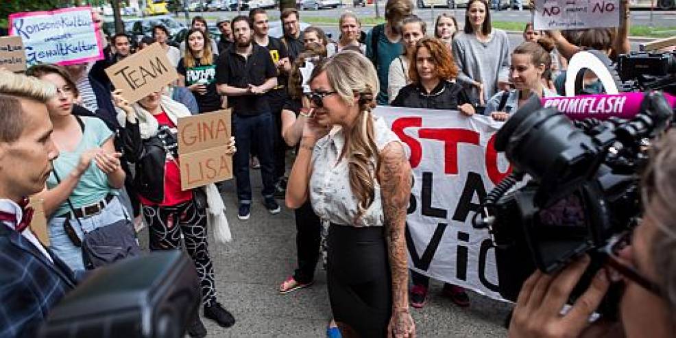 Staatsanwältin Corina Gögge und Richterin Antje Ebner am Berliner Amtsgericht mochten in diesen Handlungen keine sexuelle Gewalt erkennen. Im Gegenteil: Lohfink habe „orientiert und aktiv“ gewirkt. Die Richterin verurteilte Pardis F. und Sebastian Castillo Pinto lediglich wegen "unerlaubter Verbreitung des Videos" zu einer Geldstrafe von 1.350 Euro. So weit, so üblich in Deutschland, wo nur bei jeder hundertsten Vergewaltigung der Täter auch verurteilt wird. Aber die Richterin ging noch einen Schritt weiter: Sie verurteilte Gina-Lisa Lohfink wegen "Falschbeschuldigung" ebenfalls zu einer Geldstrafe: 24.000 Euro.