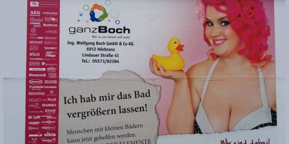 Von EMMA-Leserin Marisa aus Bregenz: "Ich bin so einiges gewohnt, was Sexismus in der Werbung betrifft. Und mittlerweile wohl auch schon etwas abgestumpft. Aber was ich in Bregenz (Bundesland Vorarlberg, Österreich) auf einem großen Plakat gesehen habe, ist ein besonders krasses Beispiel. Meister der Elemente? Das sind wohl eher Meister des Sexismus!"