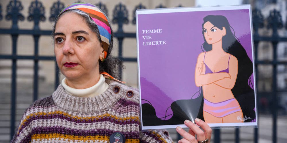 Brilliant action in Paris today in solidarity with #AhooDaryaei.
