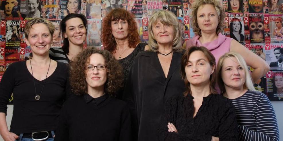 4. November 2013 Artikel teilen Die EMMAs: v.li. Chantal Louis, Irina Rasimus, Angelika Mallmann, Franziska Becker, Alice Schwarzer, Margitta Hösel, Anett Keller, Silvia Kretschmer (fehlt nur Alex Eul).