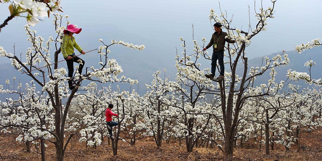 Obwohl ich mich so weit wie möglich streckte, blieb die Blüte ganz oben außerhalb meiner Reichweite. Ich war kurz davor, aufzugeben, doch ich wusste, dass mir dann Strafe drohte, also versuchte ich es noch einmal. Uns wurde der Lohn gekürzt, wenn wir die Pollen zu schnell oder zu langsam aufbrauchten. Das wahre Ergebnis unserer Arbeit blieb zunächst unsichtbar. Wenn wir am Ende des Tages von den Bäumen herabkletterten, war unser Einsatz nur durch rote Kreidekreuze auf den Stämmen erkennbar, im Idealfall bis zu vierzig am Tag. Erst wenn es Herbst wurde und die Äste schwer waren vom Obst, zeigte sich, wo gute Arbeit geleistet worden war. Doch da hatten wir meistens schon vergessen, wer welche Bäume bestäubt hatte.