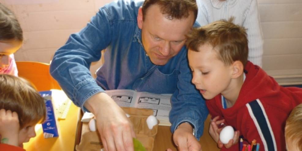 Auch Christian Karbe ist überzeugt, dass viele Männer noch immer zu wenig über seinen Beruf wissen: „Man ist ja nicht bloß Erzieher, man ist auch Künstler, Techniker, Sportler, Schauspieler und Wissenschaftler“, sagt der Optimist. Gerade heute hat er mit den Vorschulkindern ein Experiment durchgeführt: Zwei Eier, ein rohes, ein gekochtes. Welches rollt weiter? Natürlich ist das rohe Ei irgendwann zu Bruch gegangen, aber dafür hatten die Kinder und Karbe jede Menge Spaß. „Als Kita-Erzieher muss man sich gefühlsmäßig öffnen können“, sagt Karbe, „gerade Männern fällt das oft schwer“.