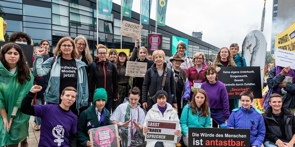 Mit dem sogenannten „Selbstbestimmungsgesetz“, so die Protestierenden, treten die Grünen ihren Anspruch, eine feministische Partei zu sein, mit Füßen.