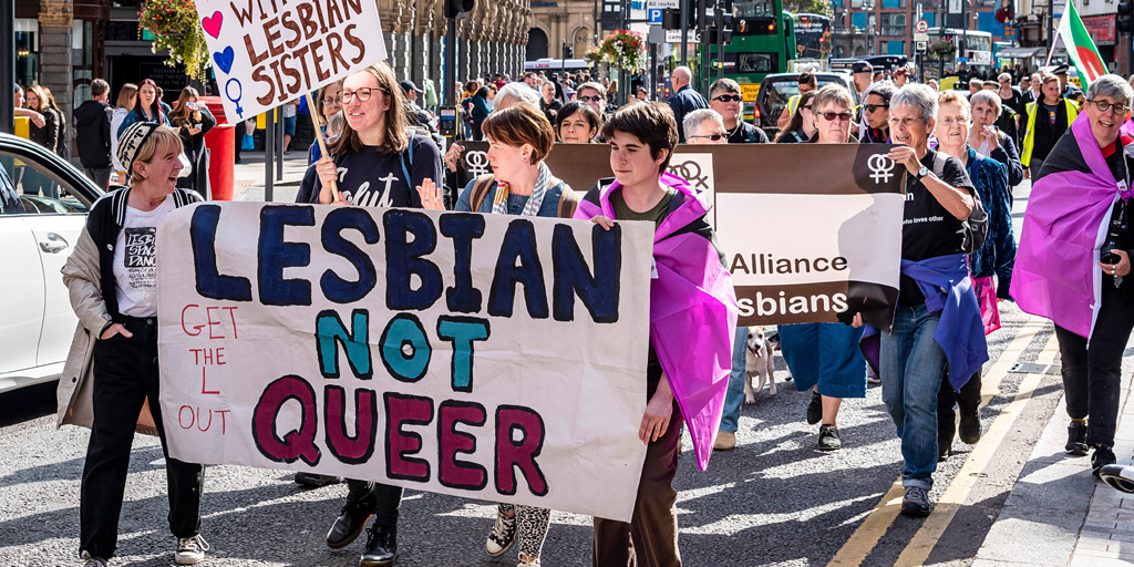 „Das L muss aus der Buchstabenreihe LGBTQI raus, damit Lesben ihre Interessen wieder eigenständig vertreten können“, erklärt Liane Timmermann, Aktivistin bei „Get The L out“. Die Queer-Community ist darüber not amused: Beim diesjährigen Gay Pride Marsch in London waren die lesbischen Aktivistinnen nicht erwünscht und wurden auf Weisung der Veranstalter von PolizistInnen aus der Demo gezogen. „Dabei hatten uns viele Lesben applaudiert“, sagt Liane Timmermann. Nach jeder Veranstaltung, auf der „Get The L Out“ mit ihrem Transparent „Lesbian, not Queer“ auftauchen, „bekommen wir Hunderte zustimmende Mails“.