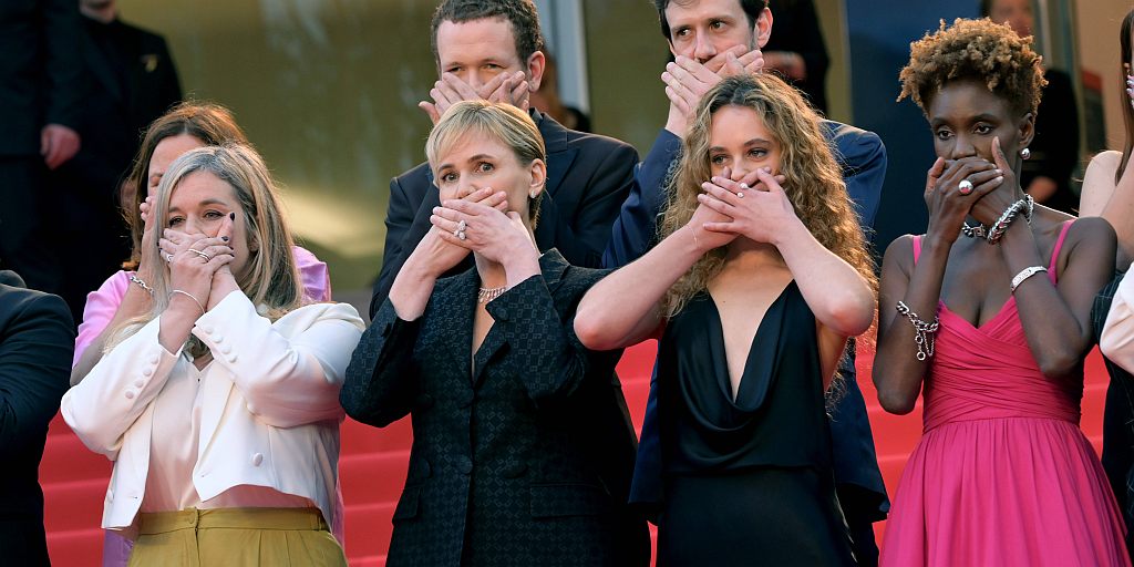 Es war ein ungewöhnliches Bild, das sich den Kameras und Fotografen auf dem roten Teppich in Cannes bot. Schauspielerin Judith Godrèche legte sich fürs Foto die Hände über den Mund, genau wie ihre Begleiterinnen und Begleiter, alle Protagonisten ihres Films „Moi aussi“, also: MeToo. In diesem Film geht es um das Schweigen über sexuelle Gewalt beziehungsweise darum, dass immer mehr Opfer nicht mehr schweigen. Deshalb die zugehaltenen Münder auf dem roten Teppich.