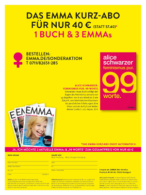 Schwarzer: „Ja, danke. Zum anderen kämpft man um Änderung der Verhältnisse, wenn man ein Gerechtigkeitsempfinden hat, sozial empfindsam ist. Und dann gibt es aber Dinge, von denen profiliert man. Und ich glaube, dass, also in aller Freundlichkeit gesagt, wirklich in aller Freundlichkeit, weil, wie sollten Sie daraus ausbrechen? Nur bedauern tu ich’s.“