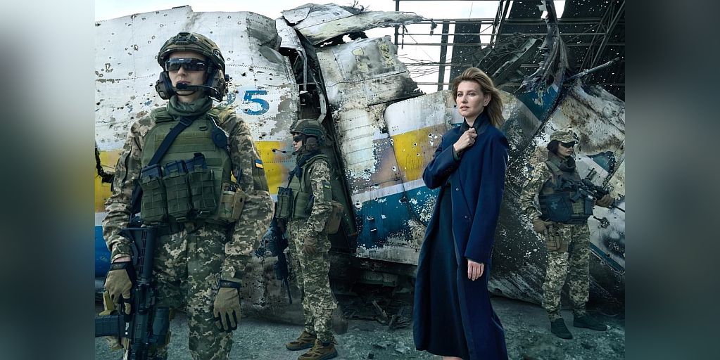 Olena Selenska (die feminine Form von Selenskyj) ist die Ehefrau des Präsidenten. Im Juni 2022 hatte sie zwei wichtige Termine: einen in Washington mit dem Ehepaar Biden, wo sie „als Mutter“ um „mehr Waffen“ für die Ukraine bat; und einen in dem schwer bewachten Präsidentenpalast von Kiew, wo sie für die US-Modezeitschrift Vogue posierte.