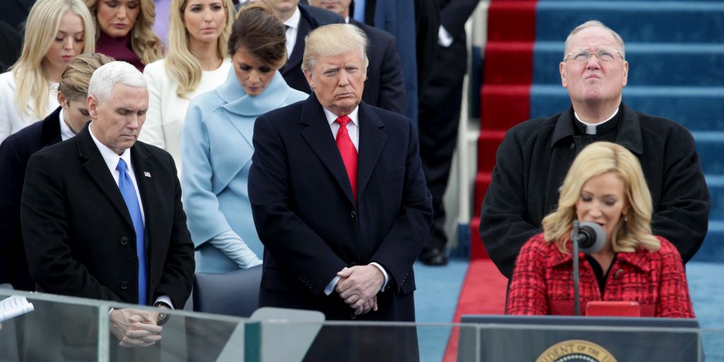 Pastor Franklin Graham, ein evangelikaler Hardliner, las aus dem Neuen Testament und forderte seine Landsleute auf, für die neue Regierung zu beten. Der fundamentalistische Pastor Samuel Rodriguez, Rabbi Marvin Heir und Kardinal Timothy Dolan von der Erzdiözese New York warfen frühere kritische Kommentare über Bord, um Trumps Amtsantritt ins rechte Licht zu rücken. „Wir segnen Präsident Donald Trump. Wir bitten Gott, ihm die Weisheit Salomons zu geben, Josefs Visionen und Jesus’ Milde“, beschwor der evangelikale Bischof Wayne Jackson eine Amtszeit nach religiösem Vorbild. Und Paula White, die als Trumps geistliche Beraterin gilt, Pastorin des fundamentalistischen „New Destiny Christian Center“, bat Gott, Trump den richtigen Weg zur Einigung des Landes zu weisen.