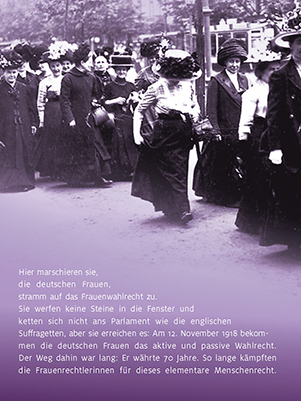 Hier marschieren die deutschen Frauen stramm auf das Wahlrecht zu. Der Weg dahin war lang.