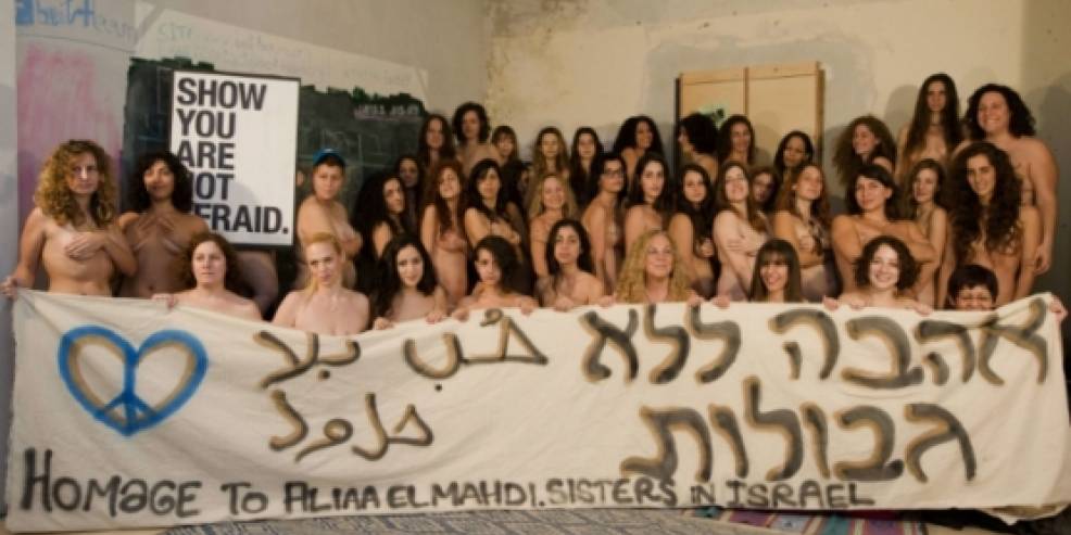 Aber die mutige Studentin hat schon Unterstützerinnen, wenn auch nicht ganz so radikale: In Tel Aviv haben sich 40 Frauen nackt mit den Worten „Hommage der israelischen Schwestern an Aliaa Elmahdy.“ fotografieren lassen. Allerdings: Die Israelinnen stehen hinter einem Transparent, das die pikantesten Blößen verdeckt.
