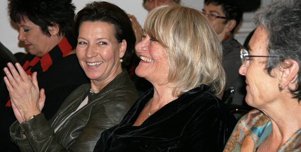 Um Frauenrechte ging es im Wiener Kreisky-Forum. Da gab es auch was zu Lachen: links von Schwarzer Frauenministerin Heinisch-Hosek, rechts EU-Abgeordnete Lunacek.